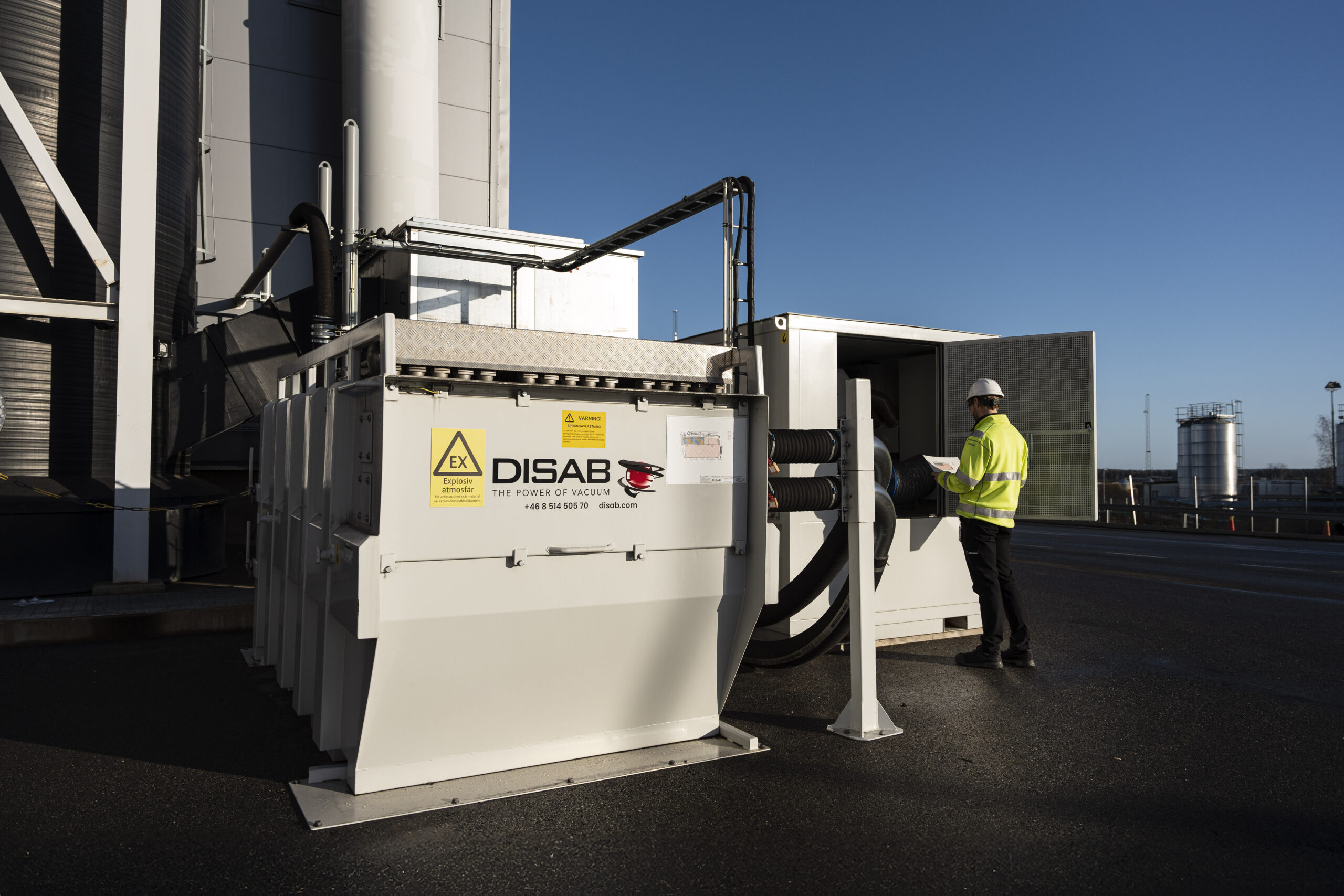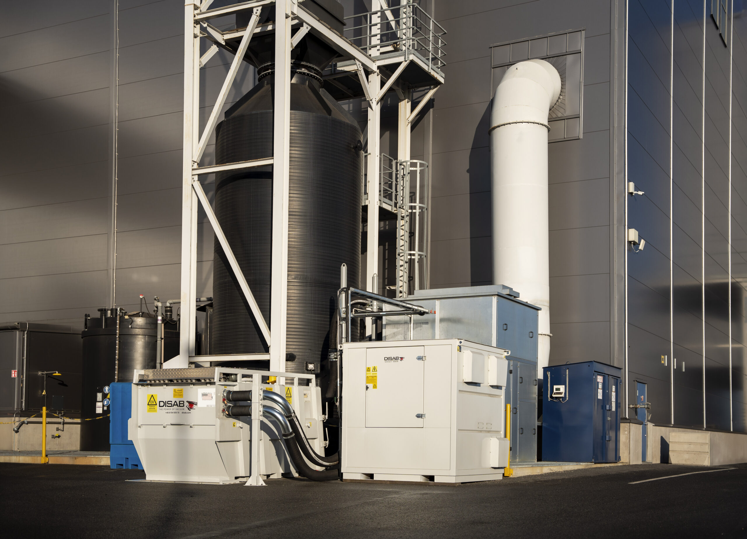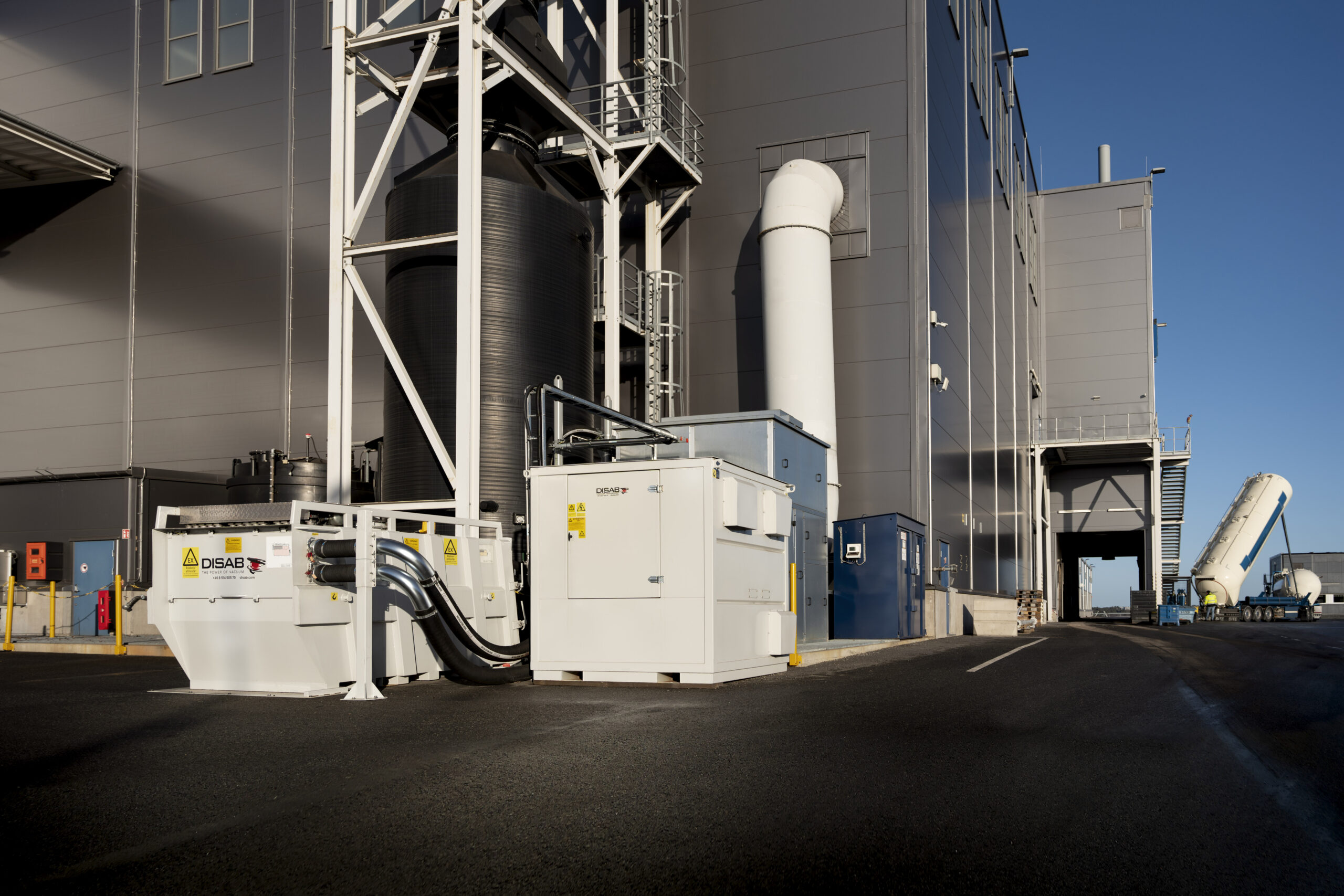 DISAB installed the PES-7 and PES-301 vacuum units, supported by BEAL mobile filter separators and a 2,500-meter pipe network with 90 suction points. - How much sand does Scania handle weekly?